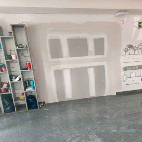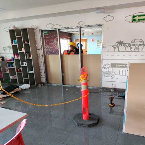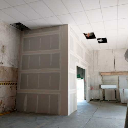 Obra civil, cimentación y edificación de muros, remodelación de interiores con tabla roca o durok así como la revisión de los sistemas mecánicos, eléctricos y estructurales para determinar si la remodelación implicará un cambio en estos.